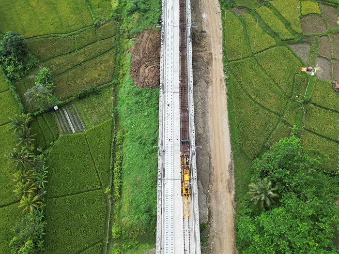 2022420日,第一根500米長(zhǎng)軌在印度尼西亞西爪哇省萬(wàn)隆縣雅萬(wàn)高鐵動(dòng)車走行線順利鋪設(shè),雅萬(wàn)高鐵開(kāi)始啟動(dòng)鋪軌施工。