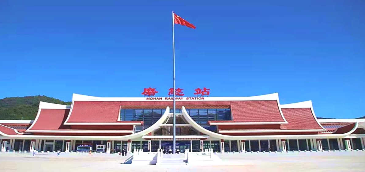 4.墨江站位于云南省墨江哈尼族自治縣聯(lián)珠鎮(zhèn)癸能村,距離縣城區(qū)約8公里。墨江站為側平式站房,主體建筑面積4990平方米,地上1層(兩側夾層),地下局部1層,最高聚集人數(shù)600人。旅客乘降站臺2座、到發(fā)線3條。采用驗檢合一的進站檢票模式,設商務候車室、母嬰候車室及重點旅客候車區(qū)。
