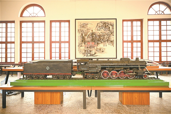 津浦鐵路泰安博物館內(nèi)陳列的蒸汽機車和復興號列車模型。