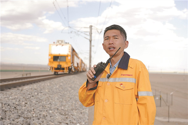 近日,喬濟源從若羌站登上了開往依吞布拉克站的貨運列車。他專注地查看前方線路、接觸網(wǎng)和沿線電務(wù)設(shè)備,觀察軌道的細微變化?!拔覀冘囬g融合工務(wù)、電務(wù)、供電3個專業(yè),每月都要進行巡檢。”他說。
